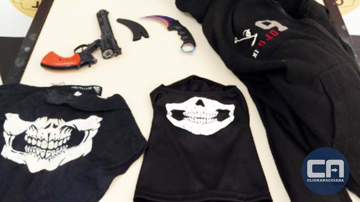 Um infrator de 15 anos foi apreendido pela Polícia Civil nesta sexta-feira (6) em Araçoiaba da Serra, após denúncias de que ele estaria ameaçando e constrangendo pedestres na via pública. Segundo informações policiais, o infrator circulava utilizando uma máscara e portando uma adaga, gerando preocupação na comunidade. Diante da ocorrência, os agentes se deslocaram até a residência do menor, onde, com a autorização da mãe, realizaram uma busca. No local, foram encontrados e apreendidos os objetos utilizados na ação: a adaga, vestes e máscaras. Os policiais também localizaram um simulacro de arma de fogo, ou seja, uma arma de brinquedo ou réplica, que foi igualmente recolhida.