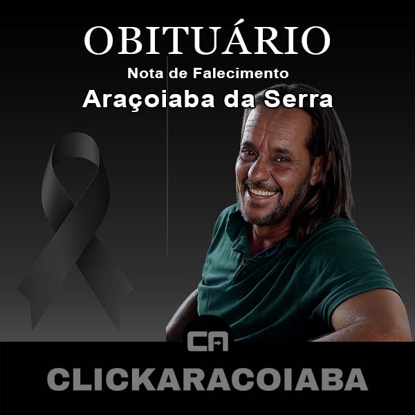 Com imensa tristeza, o CLICKARAÇOIABA comunica o falecimento abaixo qualificado. Neste momento de despedida, nos unimos em solidariedade aos familiares e amigos, desejando amparo, força e paz para atravessar essa perda tão dolorosa.