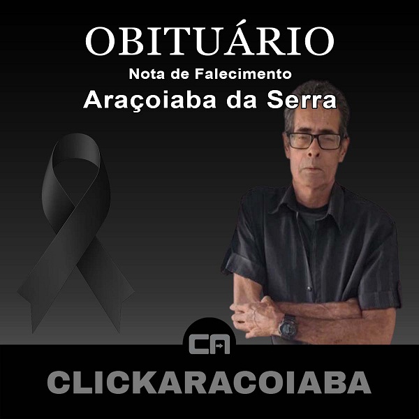 Com imensa tristeza, o CLICKARAÇOIABA comunica o falecimento abaixo qualificado. Neste momento de despedida, nos unimos em solidariedade aos familiares e amigos, desejando amparo, força e paz para atravessar essa perda tão dolorosa.