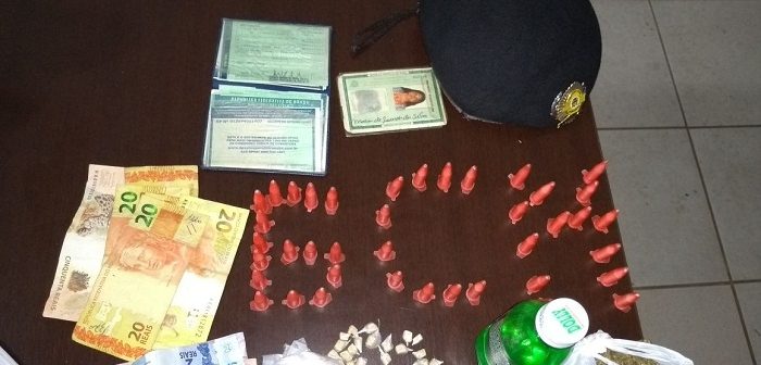 A condutora do veículo Maria de Lourdes estava dentro do carro e no interior do Celta foi localizado uma sacola contendo 40 eppendorfs de cocaína, 26 pedras de crack, um pedaço de maconha pesando 56 gramas e uma garrafa de plástico contendo líquido aparentando lança perfume.